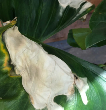 yellowing or drooping leaves, soft or foul-smelling rhizomes, brown or water-soaked leaf spots, leaf curling or tearing, leaf edge burn, sticky honeydew, fine webbing and speckling